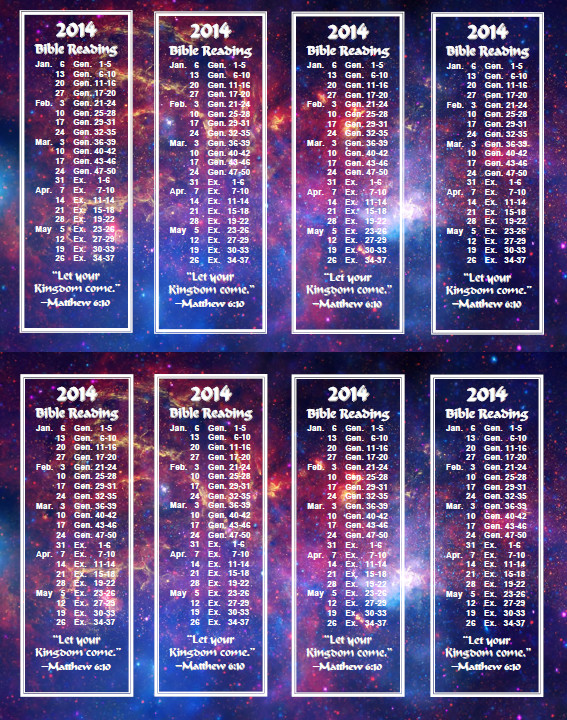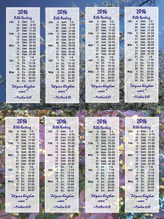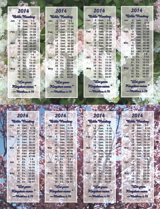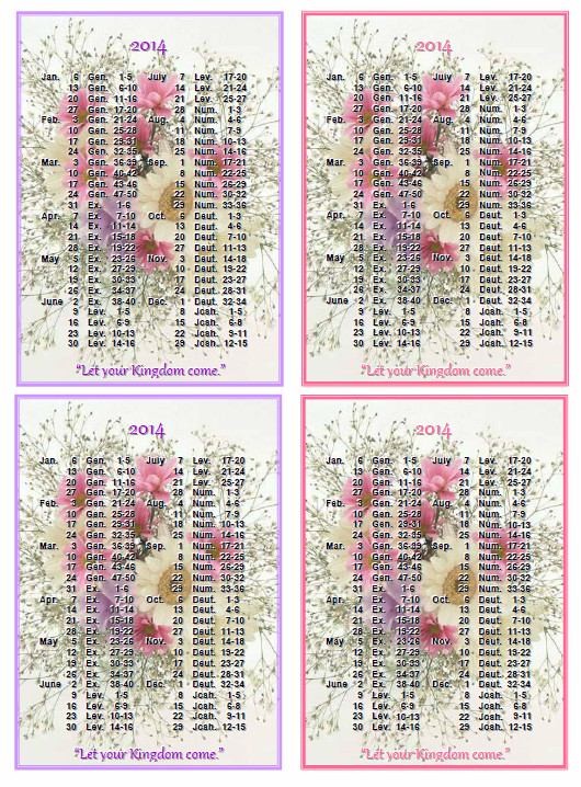 reduced in size for easier viewing and faster loading. The front of the bookmark is shown. If the entire year is not shown on the front, it is on page two to print on back. Any you download will print as shown on full size 8½ x 11 sheets. Download links (for DOC and PDF) are under each bookmark. If PDF documents open instead of downloading, right-click and choose "Save Target As" or "Save Link As".Thanks goes to DeniP's Designs and Hilde for these bookmarks. |